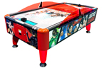 The Justice League has come together on this exciting new take on the classic air hockey table design! This air hockey table features full motion LED lighting in the playfield, edge rails and in the legs to make this an attractive piece in any game room. The playfield will light up red or blue to let everyone know who has scored. This game also has exciting heroic gameplay music and action sound effects when the puck hits the table edges.