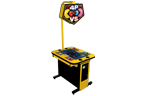 Pac-Man Battle Royale is the first four player competitive Pac-Man arcade game. The original Pac-Man game concept has been given a cannibalistic twist: Eliminate your opponents by eating them and the last Pac-Man standing wins the round. When players eat a power pellet, they power-up by doubling in size and increasing in speed. Once powered up, they are now able to eat non powered-up blue players and ghosts. Players of the same size simply bounce off each other. Players can also be eliminated by running into ghosts if there aren't any powered up players. Eating a piece of fruit or all of the pellets resets the maze with a fresh new set of power pellets. At the end of the game, statistics are displayed for each players such as "Won Most Rounds" and "Ate Most Pac-Man", etc. The game is simple, competitive, and highly addictive.