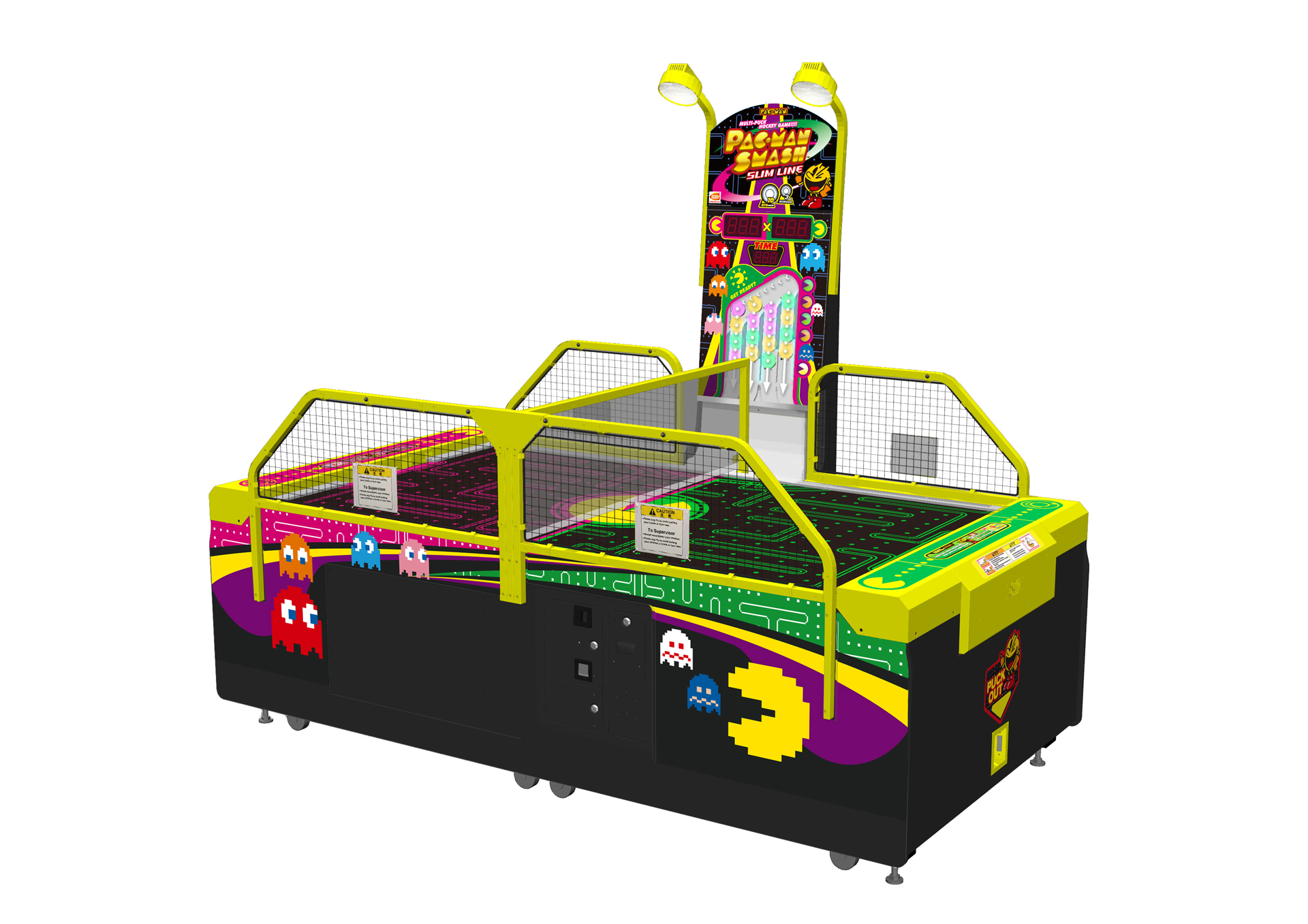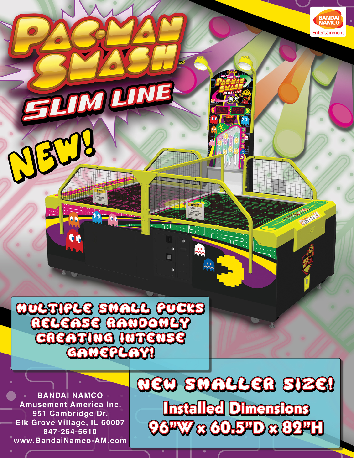 The latest incarnation of the unique game PAC-MAN Smash. Same game play (large puck and then frenzy of small pucks during the game), at a lower cost with a slightly smaller footprint. Simplified mechanism but with the same PAC-MAN branding, play field and PAC-MAN sound effects.